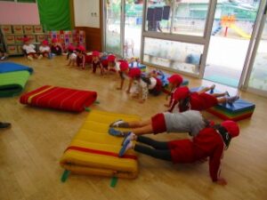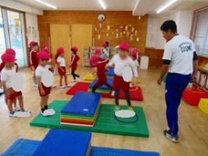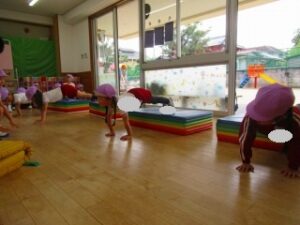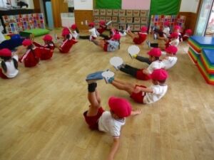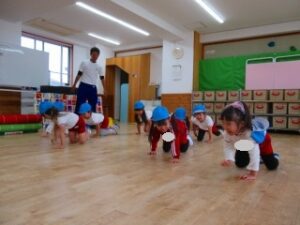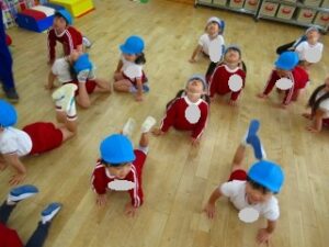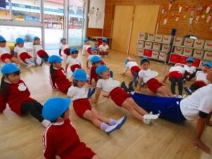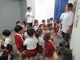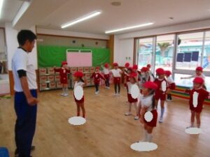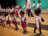 「お客さんはどこから見てるかな?」「たくさんのお客さんが大きな拍手をくれるからね!」と、本番をイメージしながら進めていきました。