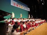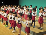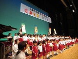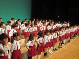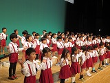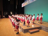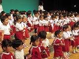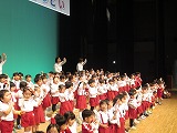 まずは、幼稚園の代表として、創立90周年記念式典で、園歌を披露しました。