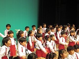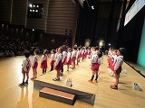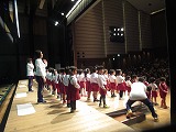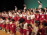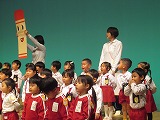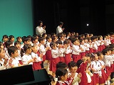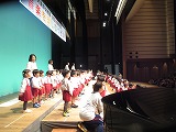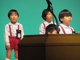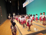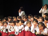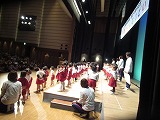 舞台の上に並び、緞帳の後ろで子どもたちは、嬉しさと恥ずかしさで緊張まじりの表情でしたが、緞帳が上がるととっても頑張っていましたね!