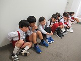 年少・りす組のお友だちが発表している間は舞台裏でドキドキ。