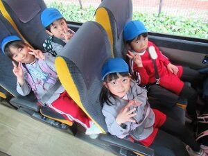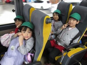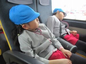 「どんな魚がいるのかな?」「サメがいるって言ってたよ!」バスの中でも会話が弾みます!