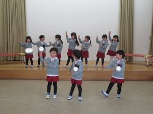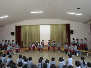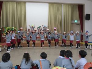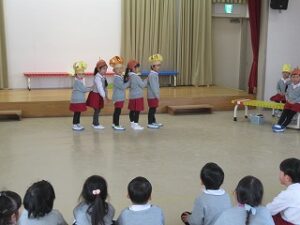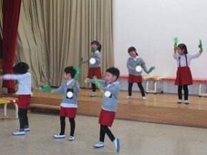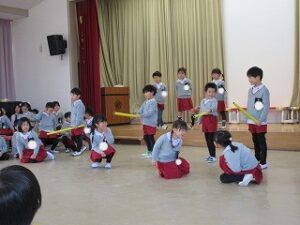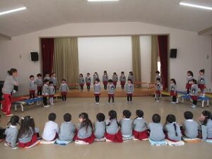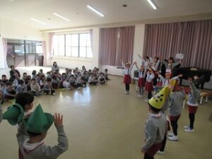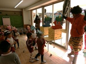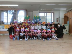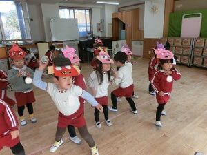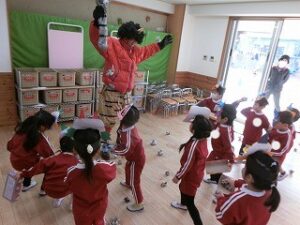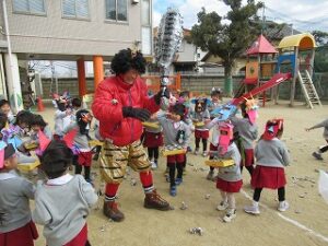 なんと大美野幼稚園に赤鬼さんが登場! 突然の鬼の登場にびっくり!