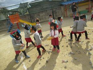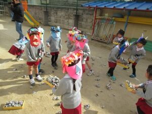 今日は2月3日、節分👹の日です。みんなで豆まき遊びをしました!✨