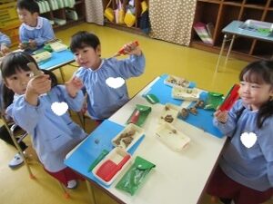 「おにぎり何入ってる?」「おやつ一緒や~!」笑顔いっぱい(^^)/!