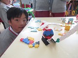 製作では、はらぺこあおむしに変身できるお面とちょうちょのおもちゃを作りました。