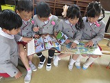 今回は“はらぺこあおむし”の製作やパネルシアター、いろんな虫さんが出てくる絵本などを持っていきました。
