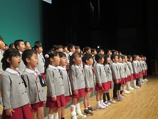 まずは、幼稚園の代表として、創立90周年記念式典で、園歌を披露しました。