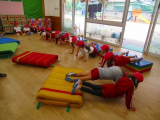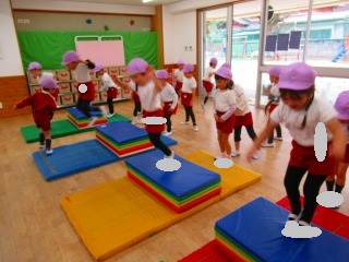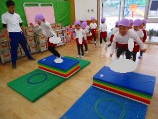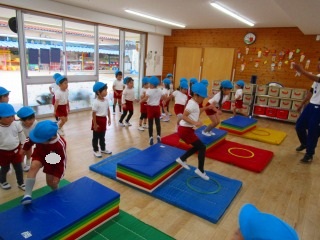 「お客さんはどこから見てるかな?」「たくさんのお客さんが大きな拍手をくれるからね!」と、本番をイメージしながら進めていきました。