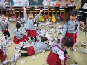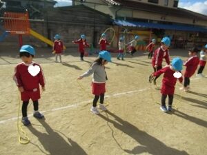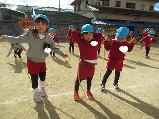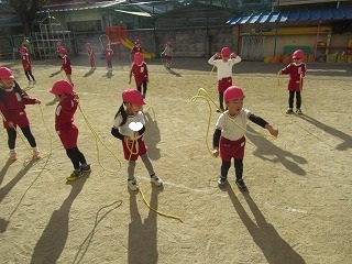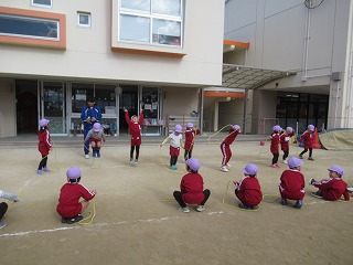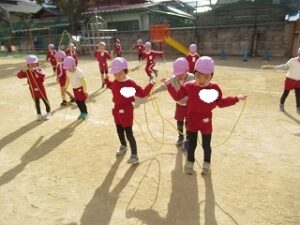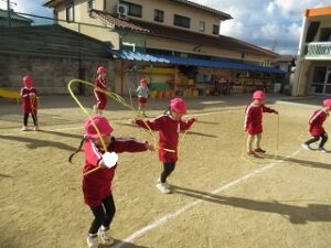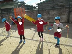 なわとびでは少しずつ跳べるお友だちも増えてきて、前跳び・後ろ跳び・あや跳びとステップアップしています!
