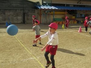 線の中で逃げながら、上手にドッジボールを楽しんでいました。