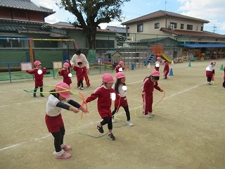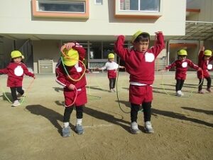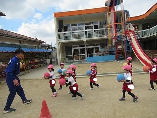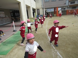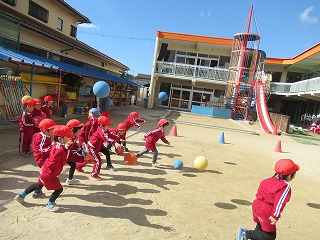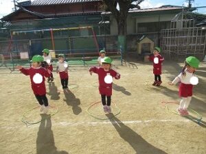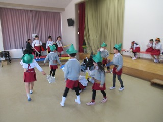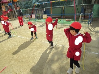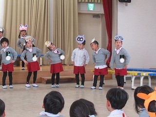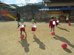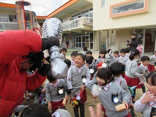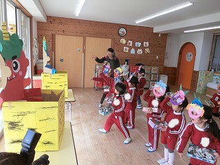 なんと大美野幼稚園に赤鬼さんが登場! 突然の鬼の登場にびっくり!