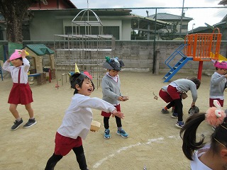必死に鬼をめがけて、鬼は~外!福は~内!鬼退治の開始です!