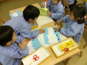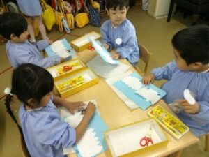 輪つなぎを作ったり、雲のまわりにホイル紙を貼ってキラキラにしたり…💕