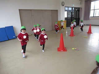 最後は中当てゲーム!みんなボールをよく見て逃げたり、投げる子は全身を使って力強く投げていました!