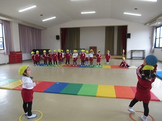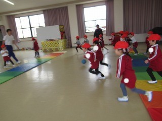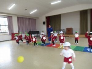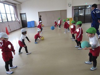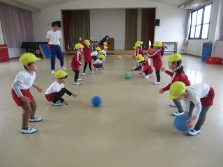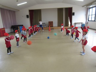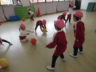 ボールはペアのお友だちと転がしたりキャッチしたりして楽しみました!