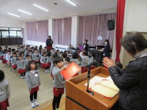 少し長い時間になりましたが、胸を張って証書を頂く姿、自分の順番がくるまで姿勢良く座る姿など、ほんとにこの一年間の成長を感じることができました。