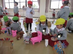 温泉や絵本屋さん、ボーリングに散歩道・・・年長さんがたくさんのお店屋さんをオープンしてくれました!