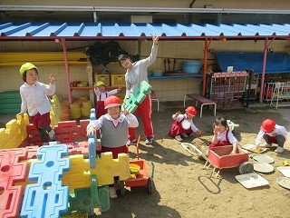 お友だちや先生と協力して、みんなで入れるおうちを作りましたよ♡