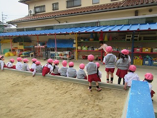 さて、今日は朝から雨。菜種梅雨真っ最中の気配です。満開に咲き誇る桜は、花弁の絨毯(じゅうたん)を敷き詰めてくれました。残念だけど美しい・・・季節は次々に進みます。始業式から3日、子どもたちは徐々に幼稚園生活のリズムをつかみかけてくれているようです。