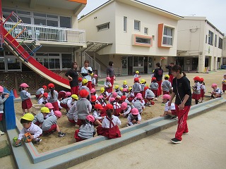 園庭の人気の場所は、やはり砂場のようです。「人生に必要な智恵はすべて幼稚園の砂場で学んだ」なんて本もありましたっけ…