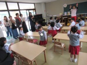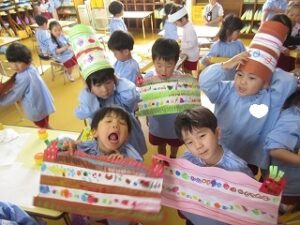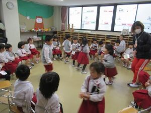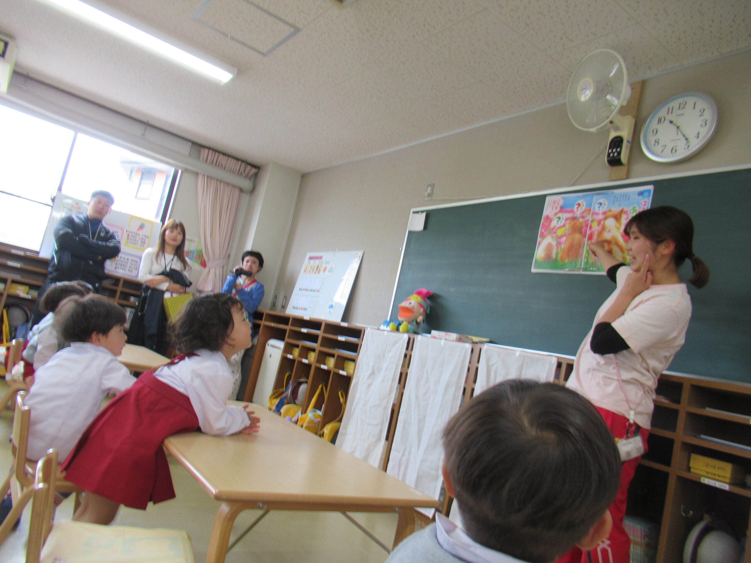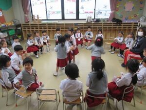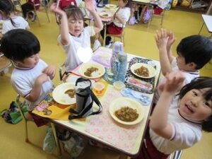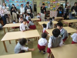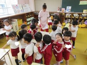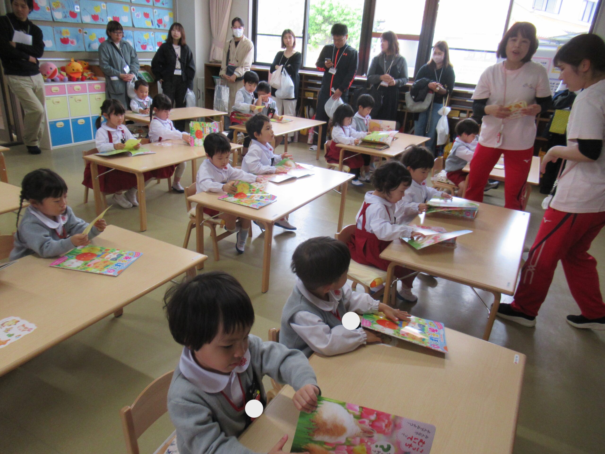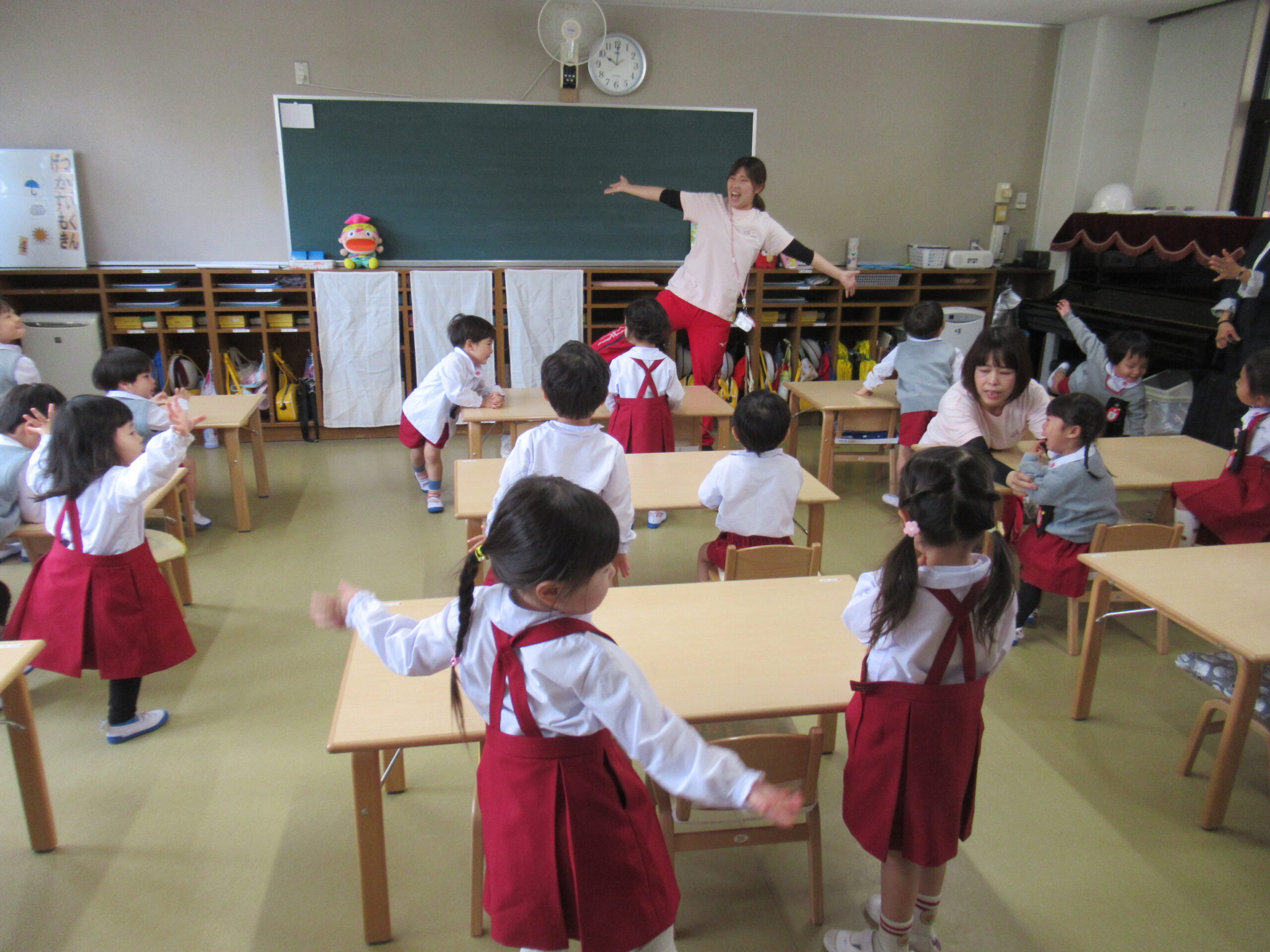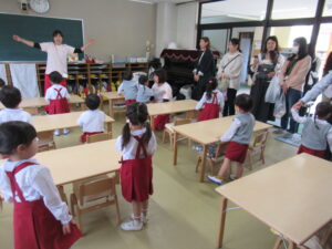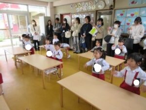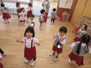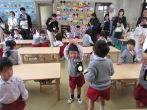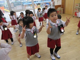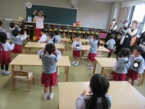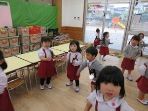 日に置き換えると11日目、まだまだ慣れない日々が続くと思いきや……ニッコニコで幼稚園に登園している緑組の子どもたち。