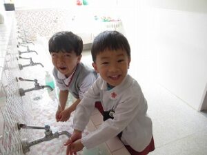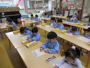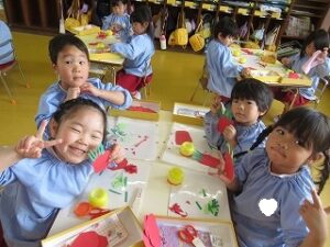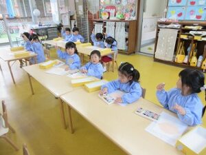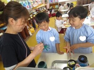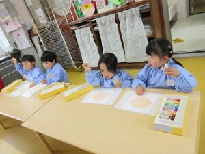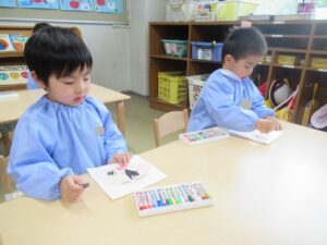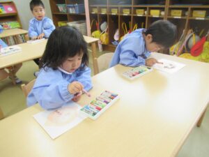 絵の具の準備は「もう自分達でできるよ!」とやる気満々です!
