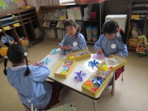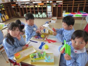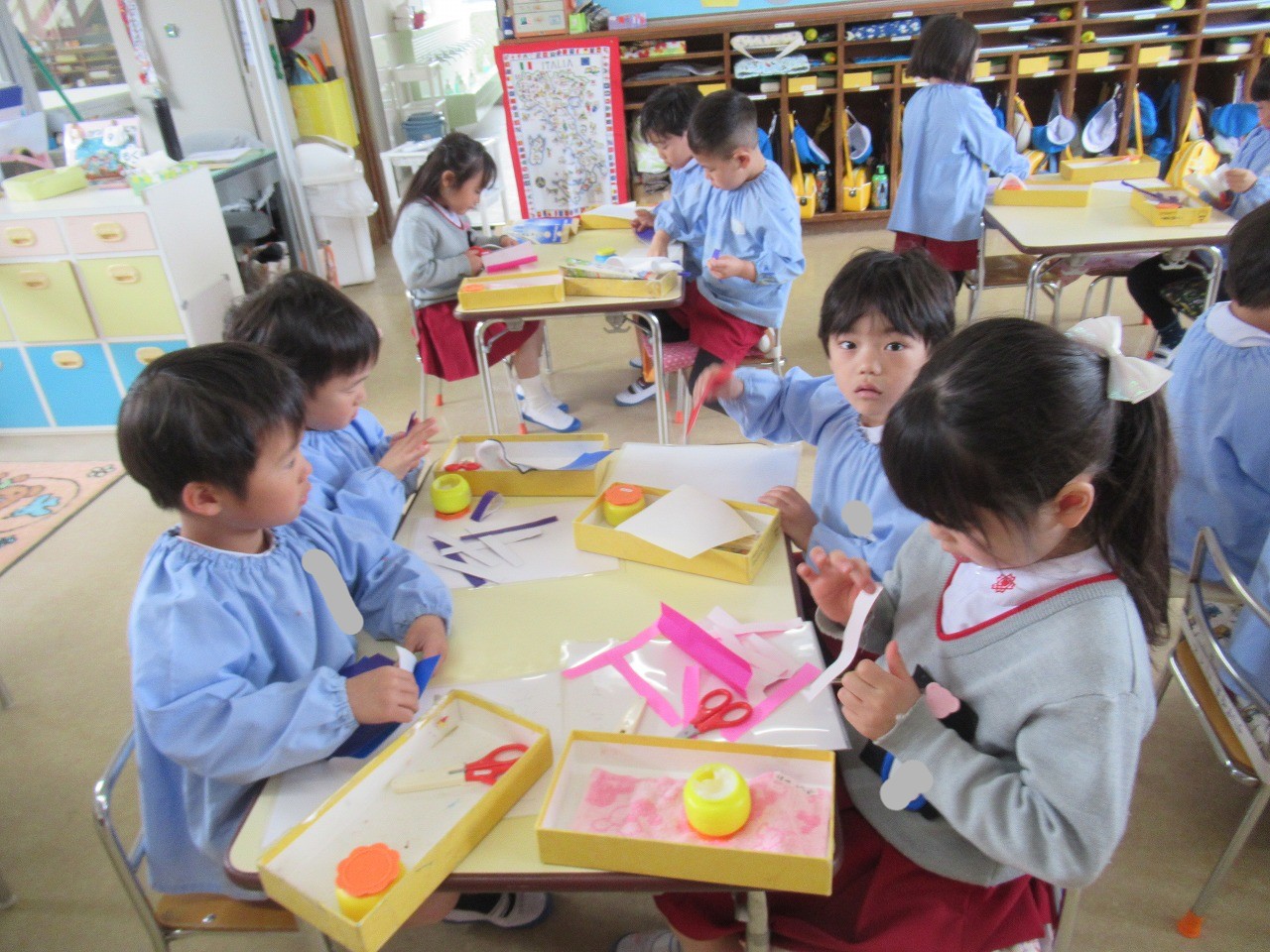 今日は、誕生表をみんなでもっと素敵にしようと、自分人形を作り始めました!