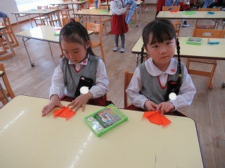 まずは折り紙を動物の形に折ります。