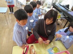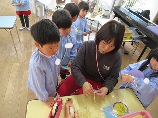 先生にひもをつけてもらったら完成です☆彡