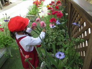 たくさんある花の名前、覚えられなくとも、話題にすることで子どもたちの記憶に少しずつ残っていきます。毎年耳にすることで定着する、これも大事なことだと思っています。名前を知っているだけで、花もまた、くっきり鮮やかに感じ取ることができたりもします。