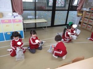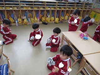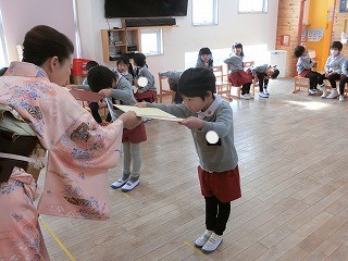 まだまだ、練習中ですが、頭からではなく、胸からのお辞儀がとっても上手な年長組の子どもたちです☺