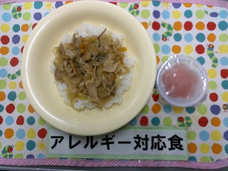 今日の給食は、すき焼き丼!