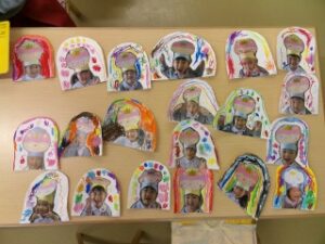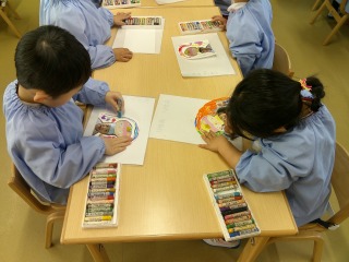 自分たちのお誕生日の時の写真を画用紙に貼り付け、周りをパスで飾りつけ♪