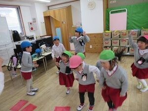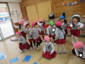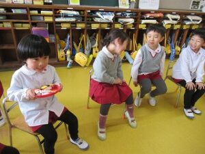 音楽が止まった時にお寿司を持っていたお友だちは罰ゲームで変顔をすると