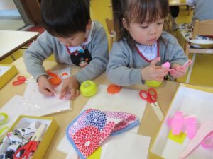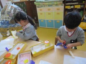 幼稚園で製作が出来るのも、後少しですね😢