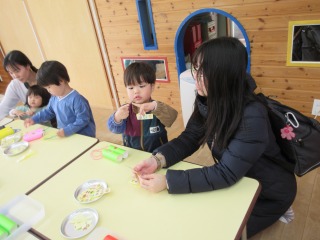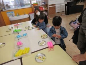 いちご組のみんなで粘土遊びを楽しみました!