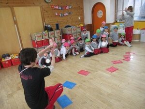 今回も、異年齢のお友達と、3つのクラスに分かれて遊びました。
