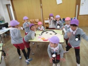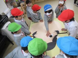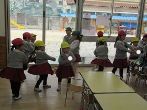 お別れ会では、朝の歌や園歌を歌ったり、園長先生のお話を聞いたりしました!