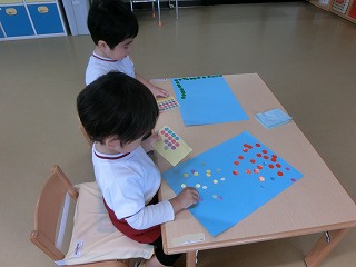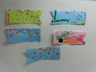 お友だちが作ったこいのぼりを見て、「作りた~い!」とやる気満々★シール貼りをして、かわいいこいのぼりができました。明日、お目👀をつけようね。待ってるよ♪