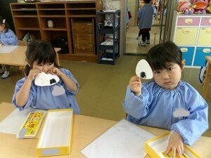 「うめにしよう」「さけがいい!」と、おにぎりができました。