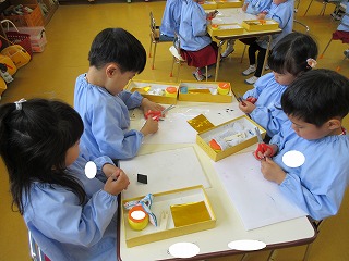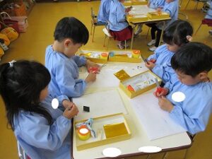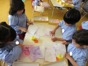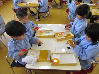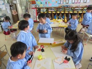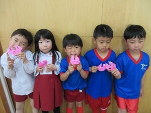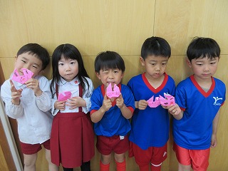 年長さんはウサギ、年中さんはお花、年少さんはねこに挑戦しました!
