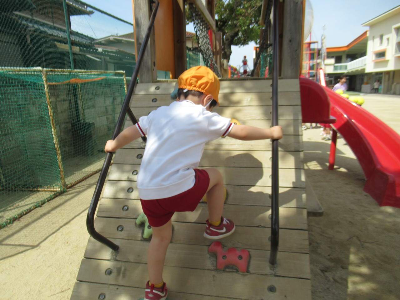「今日は、すべり台したい!」とリクエスト!外でも元気いっぱい遊びましたよ。