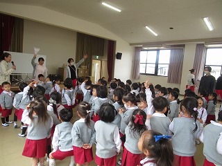 子どもたちは大美野幼稚園90周年を記念する「音楽を楽しむ集い」に向け、パワー全開で最後の練習に励んでいます。