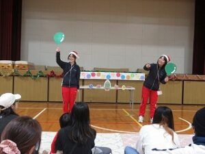 今日は登美丘中学校体育館で開催されたクリスマス会に、お手伝いとして参加してきました。