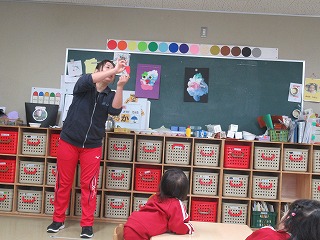 今日までに新聞紙を破ったり丸めたりして遊んだり、「しんぶんしでつくろう!」の絵本を読んだりして、楽しみにしていました。