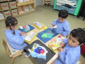 子どもたちは、それぞれ作りたいものを自由に製作していました。