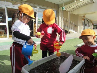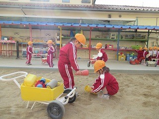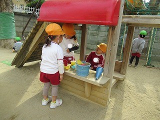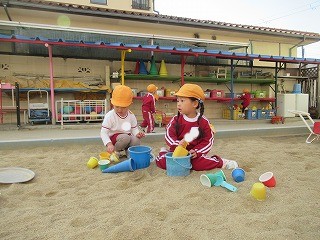 ポカポカ陽気の中、砂場遊びもしました!