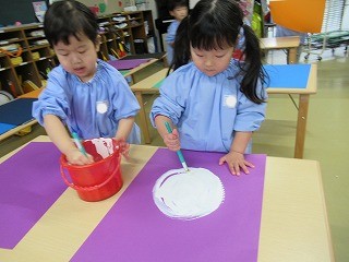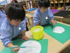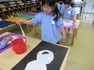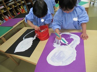 大きな画用紙へダイナミックに大きな雪だるまを描きました!