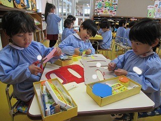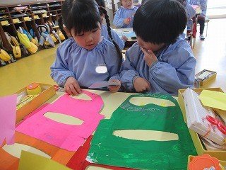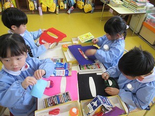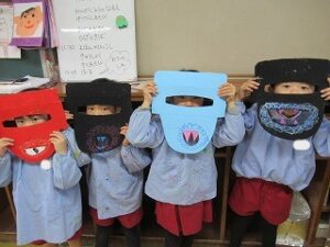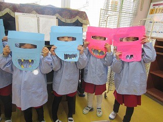 節分の日にむけ、鬼のお面の作成に真っ最中!