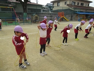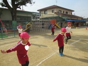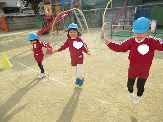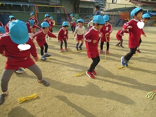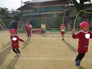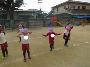 3学期はじめての体育指導は、なわとびをしています。
